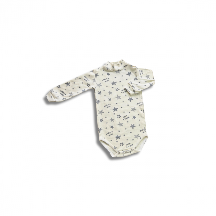 Body-ul helancă cu mânecă lungă Pampy este o piesă indispensabilă în garderoba bebelușului dumneavoastră pentru sezonul rece. Ca toate produsele noastre de bază, body-ul helancă este realizat din bumbac interlock penye 100%, moale și plăcut la atingere. Gulerul înalt și spatele acoperit protejează bebelușul de frig. Pentru un proces de îmbrăcare comfortabil, am prevăzut capse pe umăr și între picioare. Avantaje: Realizat din bumbac interlock penye 100% ce se caracterizează prin moliciune și proprietăți hipoalergenice. Guler înalt și spate acoperit protejează bebelușul de frig. Capse de calitate rezistă numeroaselor cicluri de schimbare și spălare. Croi comod și manșete la mâneci nu restricționează mișcările bebelușului, asigurând o potrivire confortabilă și maxim confort. Ușurința îmbrăcării și schimbării scutecului se datorează capselor pe umăr și între picioare. Piesă de bază în garderoba bebelușului: se potrivește perfect cu alte haine, cum ar fi costume, pantaloni, rochițe și fuste. Culori neutre potrivite atât pentru băieți, cât și pentru fete.