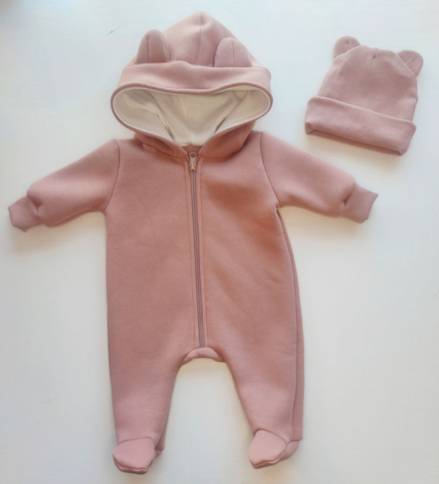 Salopeta cu flis Pampy Roz pudrat deschis+Caciulita