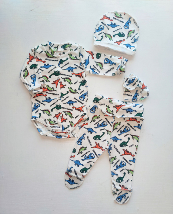 Set de coroane din 4 piese Setul include: Body Cu Maneci Lungi Pantolanasi Caciulita Manusi Setul este realizat din pânză naturală de înaltă calitate "Interlock". În acest set de haine, copilul va fi foarte confortabil. Deoarece este un material natural, acesta permite aerului și permite pielii să respire.
