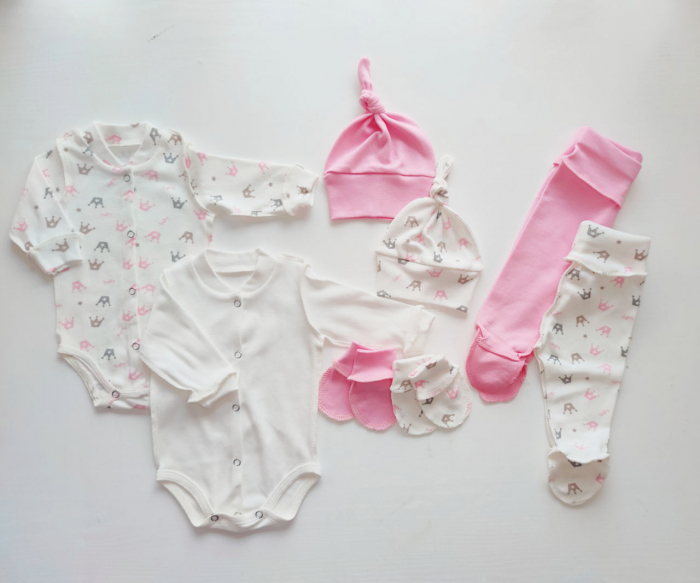 Set Pampy (0-1 luni) Ivory+Pink+Crown