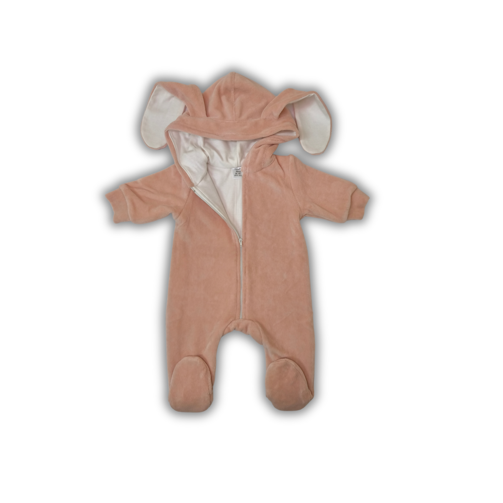Această salopetă din velur de bumbac este alegerea ideală pentru sezonul rece. Cu o glugă adorabilă decorată cu urechiușe de iepuraș, salopeta nu doar încălzește, dar adaugă și un strop de farmec garderobei bebelușului.