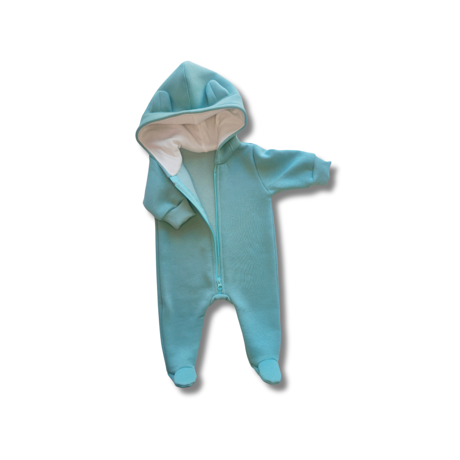 Salopetă moale și călduroasă din tricot flaușat, cu glugă cu urechi și botoșei incluși. Ideală pentru toamnă-iarnă – confortabilă, practică și potrivită pentru plimbări sau evenimente speciale.
