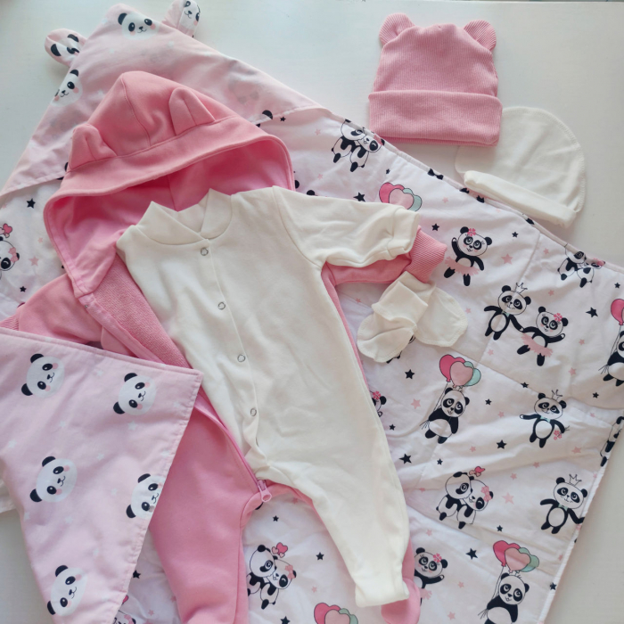 Acest set este o alegere practică și adorabilă pentru externarea din maternitate sau pentru primele plimbări ale bebelușului.