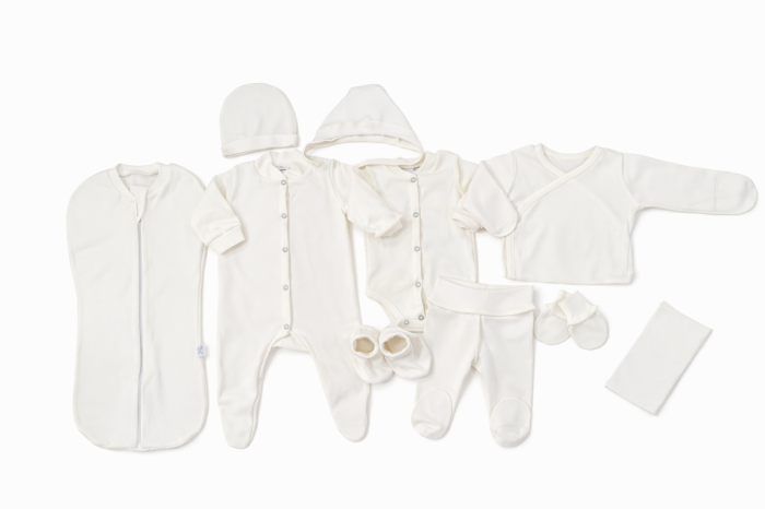 Set complet pentru nou-născut, format din 10 piese esențiale – ideal pentru maternitate, primele zile acasă și plimbări. Moale, delicat și perfect pentru pielea sensibilă a bebelușului. 🎁